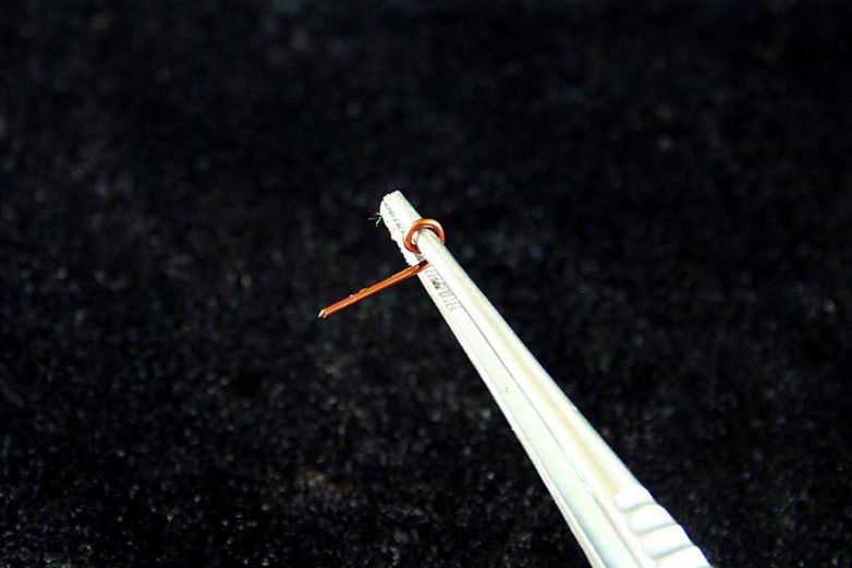 Из тонкой проволоки с помощью круглогубцев или пинцета делаем небольшое колечко.