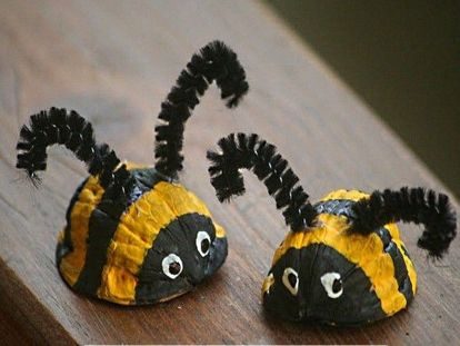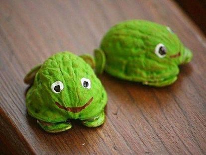 А не так давно я решила испечь тортик с грецкими орехами, и сынок сразу же завладел скорлупой от них. Он что-то мастерил, складывал, лепил на пластилин… Закончив свою работу, я присела возле сыночка. То, что я увидела, меня приятно удивило — на столике лежали уже не просто скорлупки, это были миленькие черепашки и забавные лягушата.