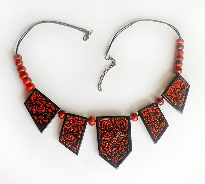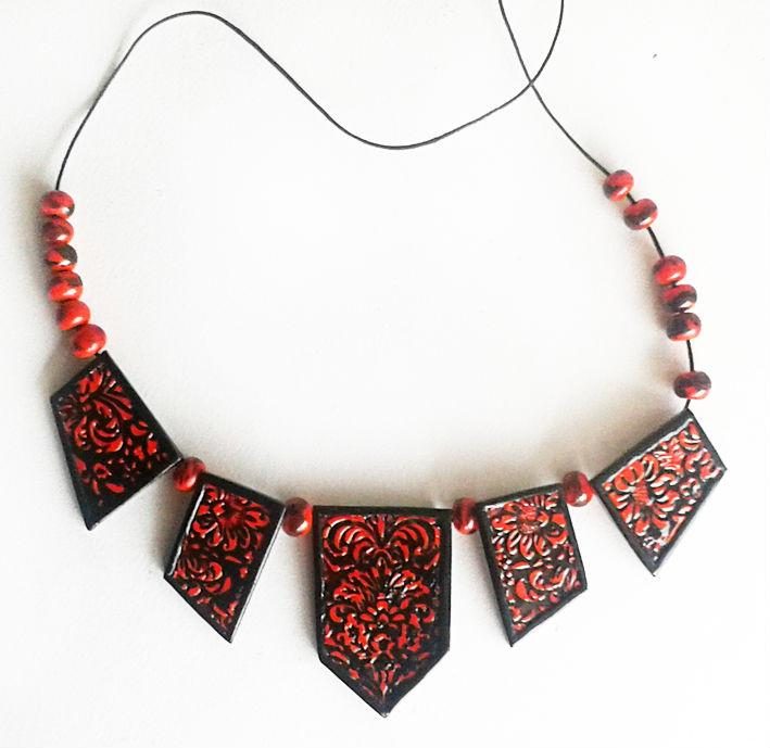 Украшения, которые можно сделать из полимерной глины, совершенно разные: забавные и строгие, объемные и изящные. В этом уроке я покажу, как сделать красивое колье с крупным, рельефным декором в черно-красной гамме.