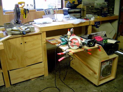Для распиливания фанеры лучше всего воспользоваться ручной дисковой пилой и импровизированной направляющей, изготовленной из доски и двух струбцин.
