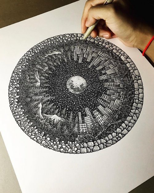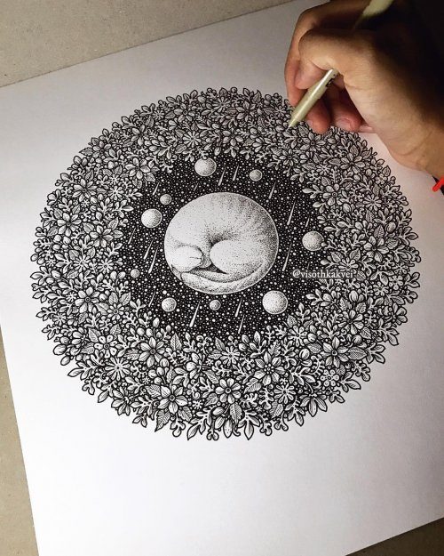 Поэтому иногда, чтобы сделать свои невероятно замысловатые иллюстрации ещё более ошеломляющими, художник улучшает их с помощью цифровых технологий, заставляя рисунки выглядеть так, будто они вот-вот соскочат со страницы.