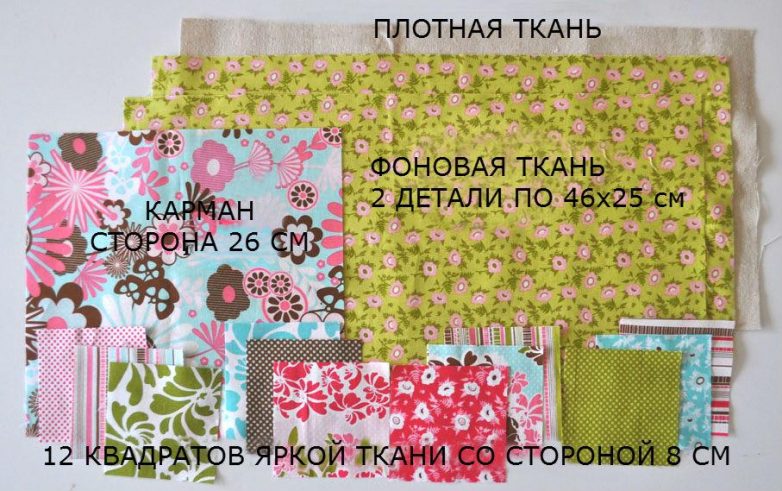 Изготовление диванного органайзера с карманамиСначала разрежьте большой кусок фоновой ткани на две части и получите два отрезка 46×25 см.