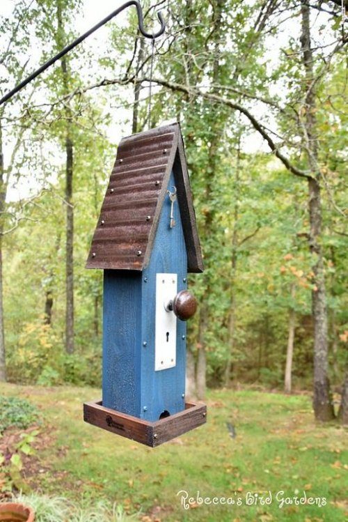 8. Деревянная кормушка в виде домика. Чтобы наполнить её птичьим кормом, нужно поднять «крышу».