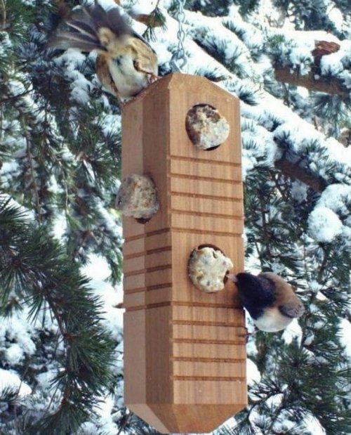 2. На такой кормушке для птиц из бревна поместятся сразу несколько пернатых