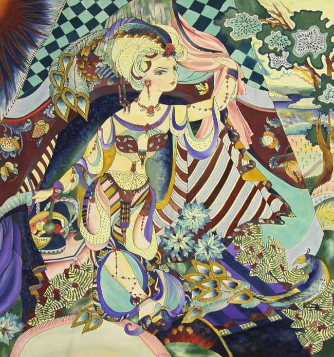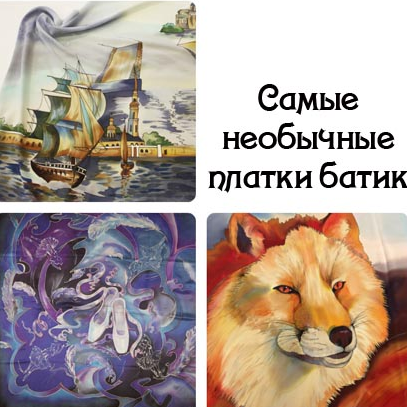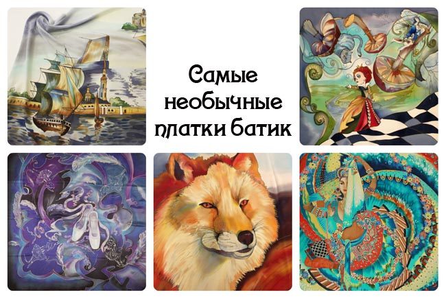 Платки Батик славятся по всему миру не только сложностью изготовления, но и оригинальностью. Тематика исполнения рисунка может быть очень разнообразная. Более привычными для обывателей стали изображения цветов, пейзажей, городов и художественных мотивов.