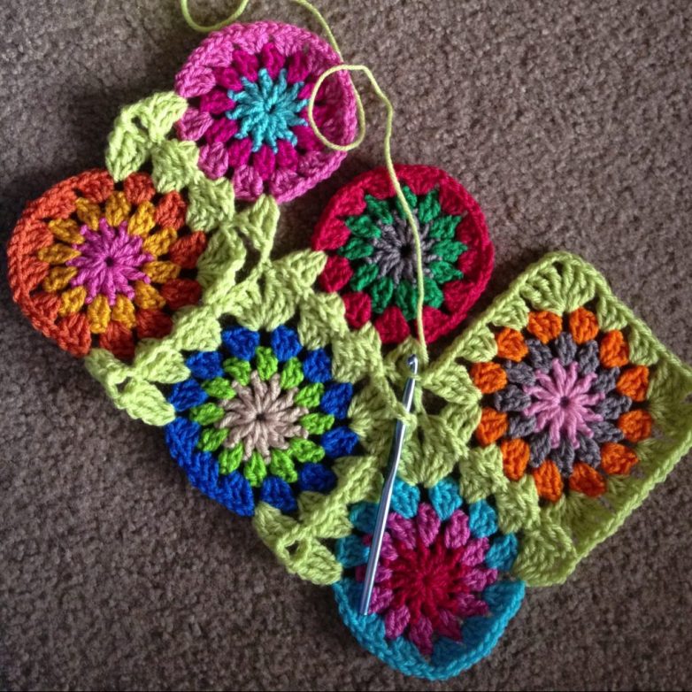 Для соединения полученных квадратиков необходимо точно измерить каждый элемент и посчитать, сколько будет достаточно для изготовления полноценного вязаного пледа с задуманным орнаментом.