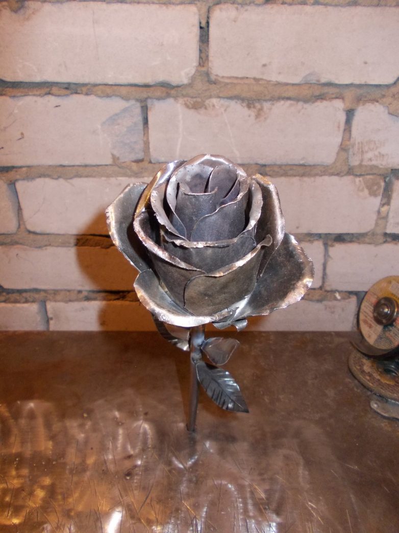 Роза готова. Но необработанный металл со временем покроется ржавчиной, и нужно предотвратить коррозийные процессы. Есть множество вариантов — напыление, лакировка, можно даже покрасить розу в цвета живого цветка.