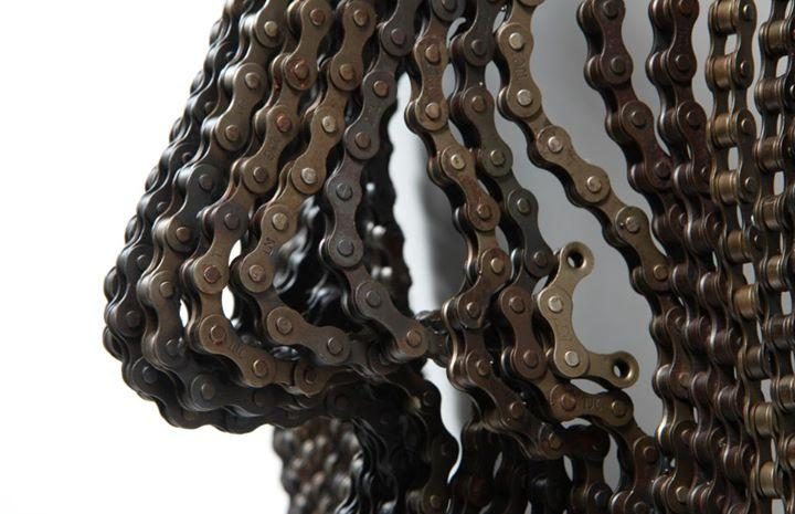 Инсталлятор из Южной Кореи Енг Дек Сео создает скульптуры из велосипедных и промышленных цепей. Фигуры людей, по словам автора, являются метафорой достижений человечества в целом.