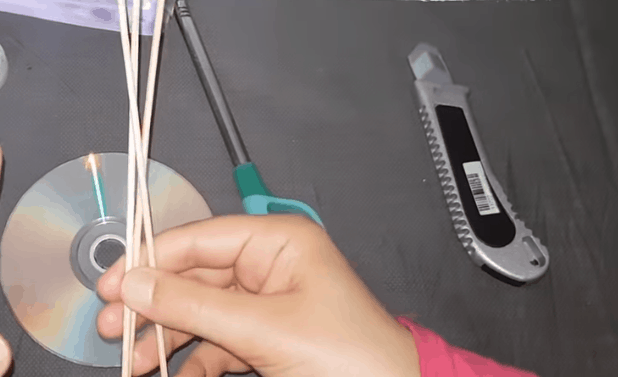 Держатель для штор готов. Осталось лишь собрать полотно, просунуть его в круг таким образом, чтобы образовалась петля, и вставить палочку.