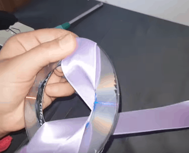 Нарезаем часть ленты на квадратики, опаливаем края ткани и формируем лепестки.