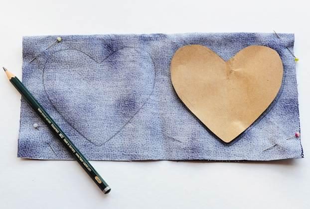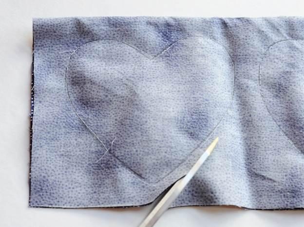 Прошиваем сердечки по намеченной линии, оставляя небольшое отверстие сбоку. Закрепляем нитку и аккуратно вырезаем заготовки, отступая примерно 0,5-1 см от шва.