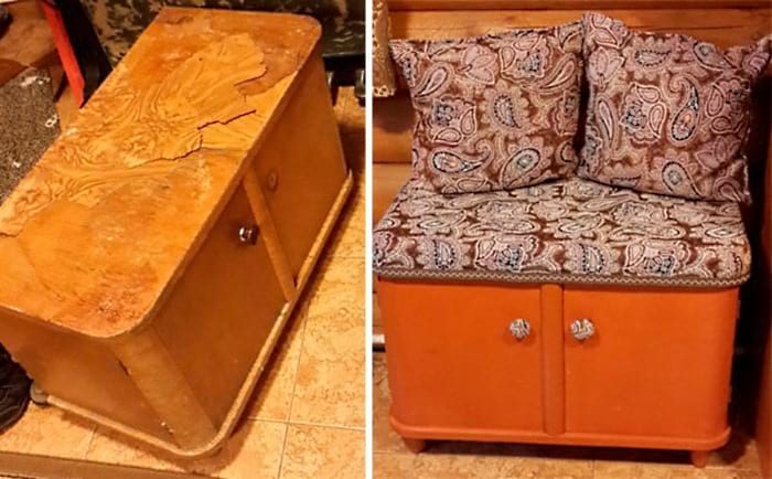 Для очень старой, унылой мебели стоит найти смелое решение.