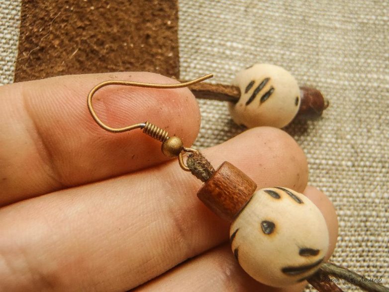 Повторяем те же операции со второй сережкой. Теперь они выглядят почти готовыми, остался завершающий штрих. Отрезаем кожаную полосочку около половины сантиметра шириной.