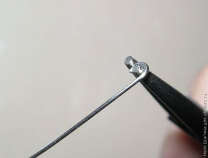 Далее берем проволоку, нам необходимо сделать пин для нашей крошки. Круглогубцами загибаем кончик, делаем что-то типа петельки.