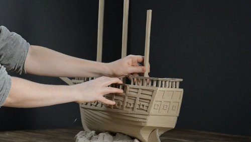 С помощью коробок из-под пиццы, упаковок для яиц, горячего клея, ниток, суперклея и краски любительница мастерить по имени Диана (Diana) построила пиратский корабль, опубликовав фотографии с процессом изготовления. По её словам, ей потребовалось около 5 дней, в течение которых она мастерила по паре часов.