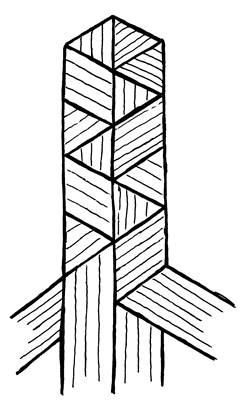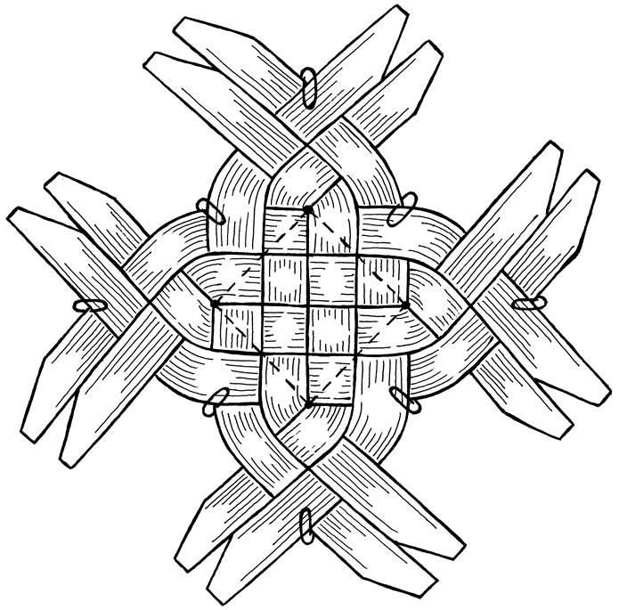 Закрывая последнюю пару лычек 5 и 11, лычкой 11 перекройте нарушение шахматного порядка, допущенное лычкой 6. Лычку 11 уложите поверх лычки 6 и спрячьте под лычку 9.