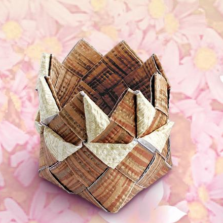 Постепенно вся солонка стала лицевой снаружи, как и внутри. Идеальный случай, когда всё изделие обратным ходом лычек стало лицевым.