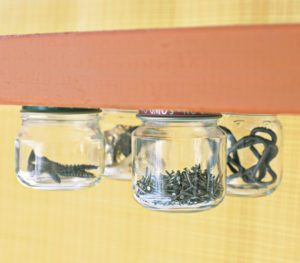 В баночках удобно хранить маленькие гвозди, шурупы и гайки.