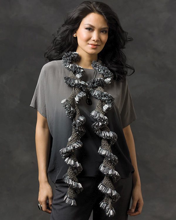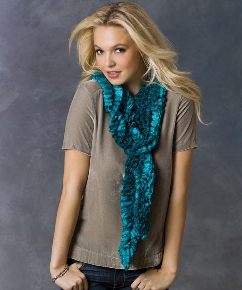 Даже петли набирать здесь не придется, а внешний вид изделия обозначится уже через несколько рядов. Отсутствуют при такой технике и кромочные петли. Использовать ленточную пряжу можно также в сочетании с обычной. Это позволяет создавать неповторимые образы и дополнять одежду оригинальными деталями. Отдав предпочтение тому или иному виду ленточной пряжи, можно получать разные эффекты. В любом случае результат будет стильным и нетривиальным. Освоив технику вязания, менять шарфики можно даже ежедневно.