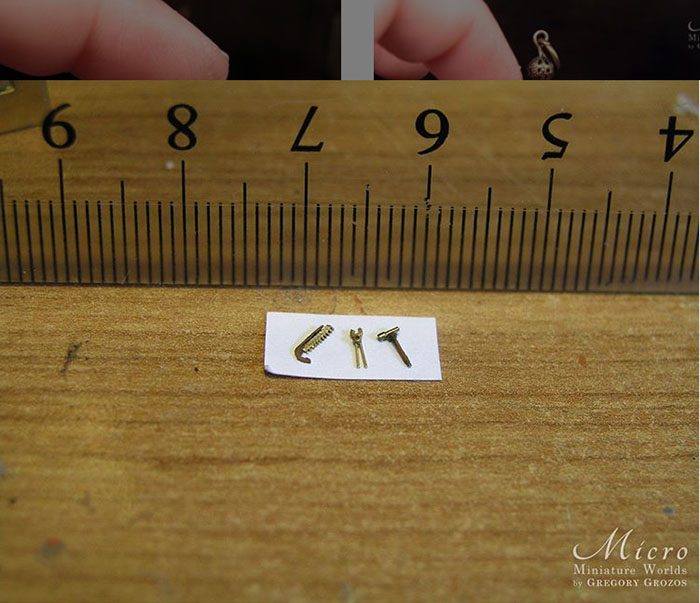 «Несколько лет назад меня посетила идея создать крошечный мир, который человек мог бы носить с собой, — рассказывает Грегори Грозос. — И тогда я стал экспериментировать, как это можно сделать. Моя работа очень кропотливая, и на каждую композицию уходит несколько дней и даже недель». «Материалы для моих мини-миров я конструирую с нуля. Я леплю их, раскрашиваю, а затем собираю все их вместе».