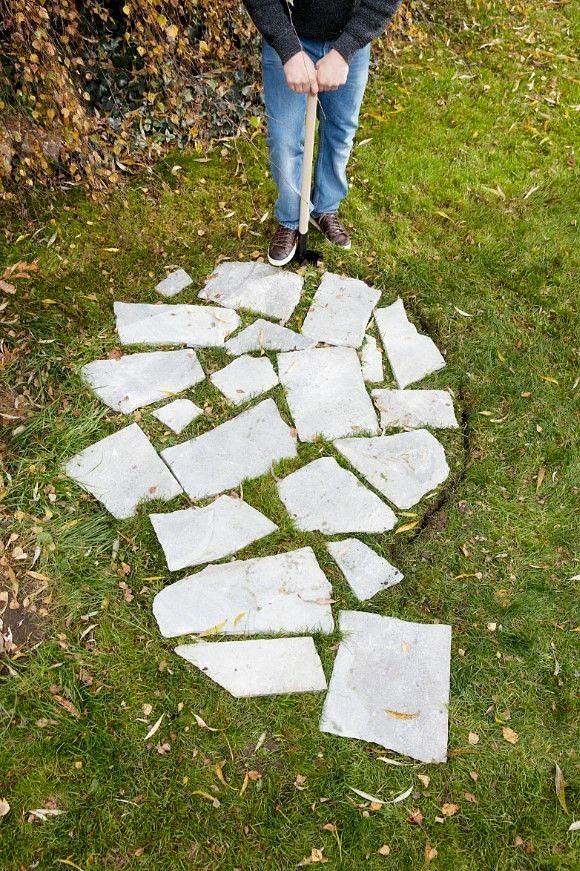 Визуализируем будущий душ: выложив рисунок, обозначаем контур при помощи лопаты.