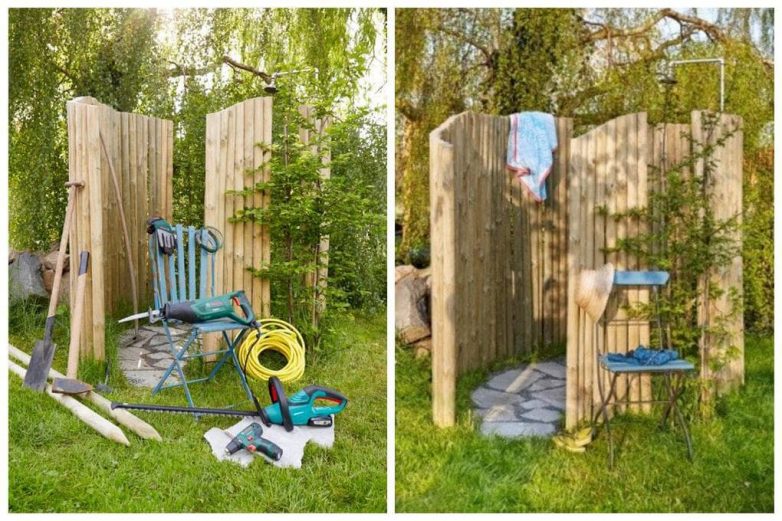 Отличной идеей, достойной всяческих похвал, станет размещенный на участке летний душ. Организовать его можно в глубине сада или невдалеке от зоны отдыха. Хорошо оборудованный, он станет гордостью хозяев дома и придаст участку особый колорит.