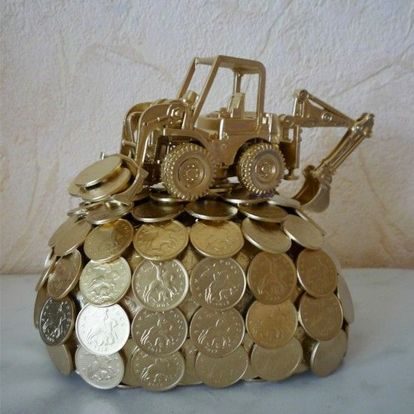 У него была мечта — декорировать одну из стен монетами. Потом он решил сделать из монет пол в ванной комнате. Но, поскольку ремонта у нас пока не предвидится, собирает он монеты просто так, а потом уже решит, что из них сделать.
