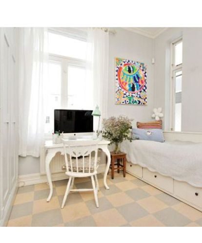 Для обустройства рабочего места я выбрала самую светлую комнату. Окно находится слева от стола. Для меня это важно, поскольку зрение у меня плохое, а работаю я почти целый день.