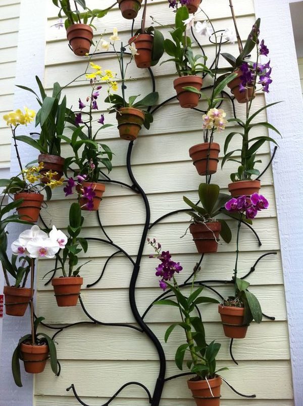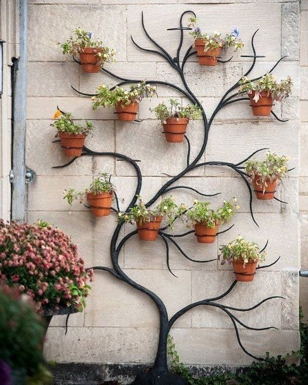 Отличной альтернативой напольным подставкам и стеллажам станут вертикальные стойки и кашпо из металла, которые можно прикрепить непосредственно к стене.