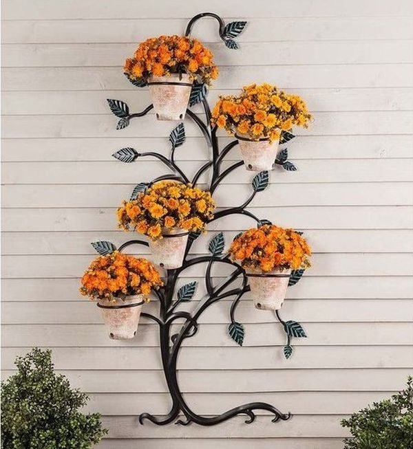 Украсить подобным способом можно балкон, стену дома, зону патио и даже часть забора. Разноплановые кованые и стальные конструкции выглядят нетривиально и даже изысканно.