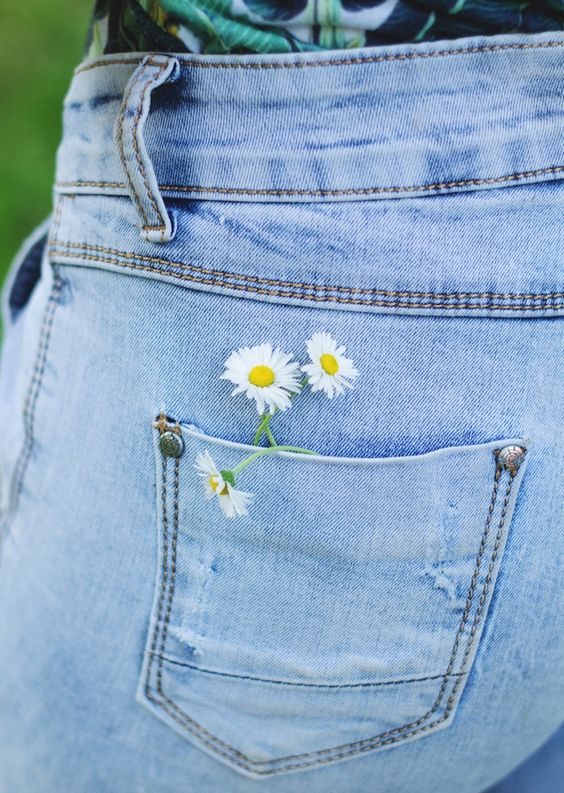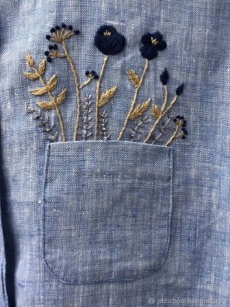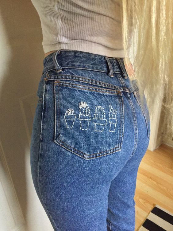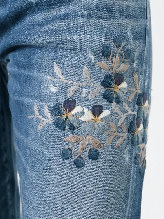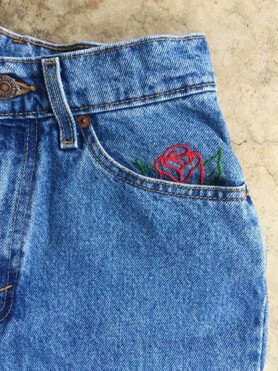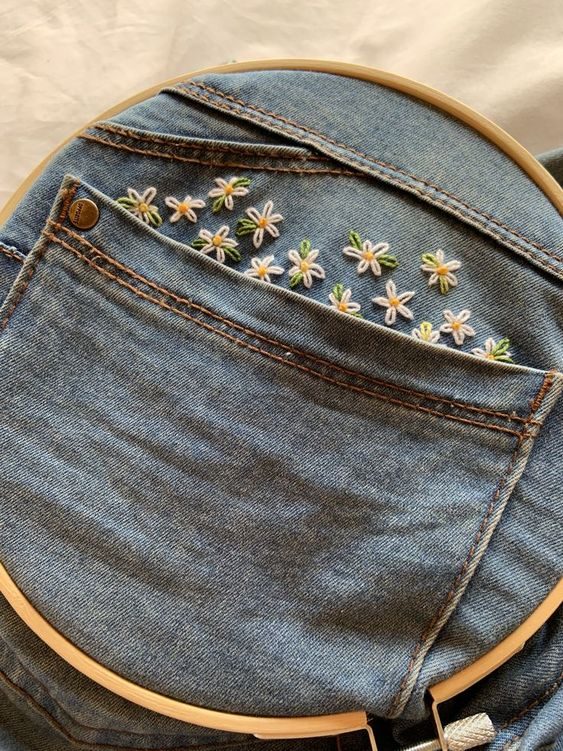 Обновить джинсы, джинсовые шорты, рубашку, жилетку можно при помощи обыкновенной вышивки. Необязательно выбирать сложный узор или использовать трафарет: достаточно подобрать простой рисунок и вышить его по джинсовой ткани нитками понравившегося цвета.
