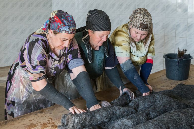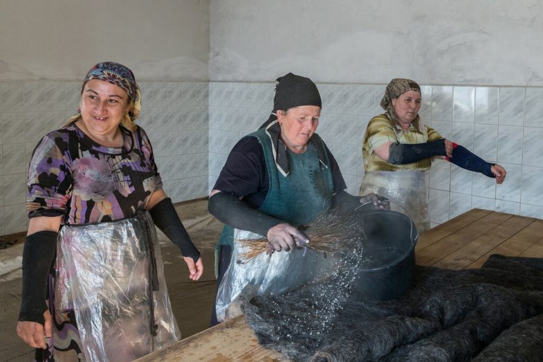 Свалянную бурку расчесывают по старинке вениками из стебельков льна и варят в котле с корой ольхи. Весит такая бурка больше пяти килограммов, а стоит не меньше 20 тысяч рублей. Дорого, но толковый чабан никогда не променяет ее и на несколько фабричных бурок. Вот только заказов и здесь немного. Полтора века назад валянием промышляли 60% андийских семей, сейчас в Гагатли остались только три мастерицы…