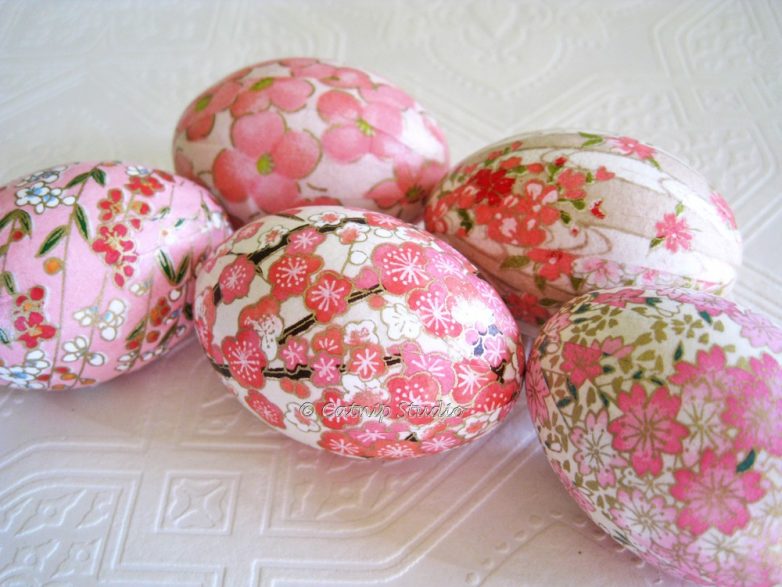 Вариантов великое множество — сделаем роспись в различных стилях, аппликацию, обвяжем крючком. Широко применяем декупаж, используем природные материалы и т.д. Кроме вареных яиц можно использовать деревянные, пластиковые или пенопластовые заготовки. Ловим вдохновение и творим!