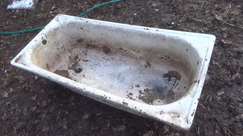 На многих дачах есть старая «убитая» ванна, которую давно не используют по прямому назначению. Однако в ней собирается мусор, замешивается бетон и т. п. Примечательно, что даже такую «убитую» ванну можно «привести в чувство» и дать ей вторую жизнь.