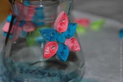 — затем накрутить бумажных полосок разных цветов (у меня было три цвета) и придать им форму капелек (см. здесь)