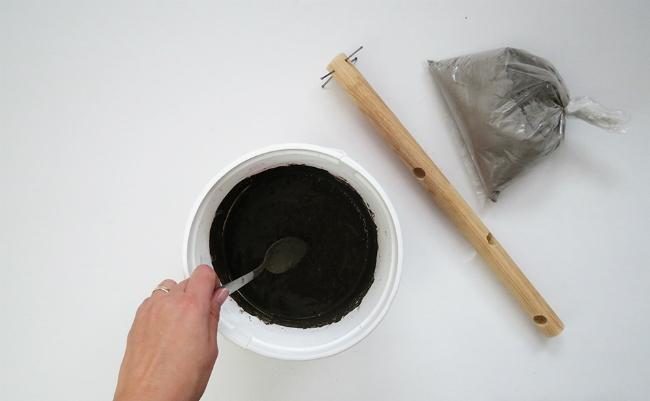 Замешайте цементный раствор и вылейте смесь в пластиковый контейнер диаметром около 20 см.