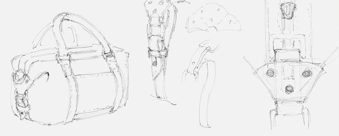 Сделал несколько набросков, как будет выглядеть сумка и проработал некоторые детали.