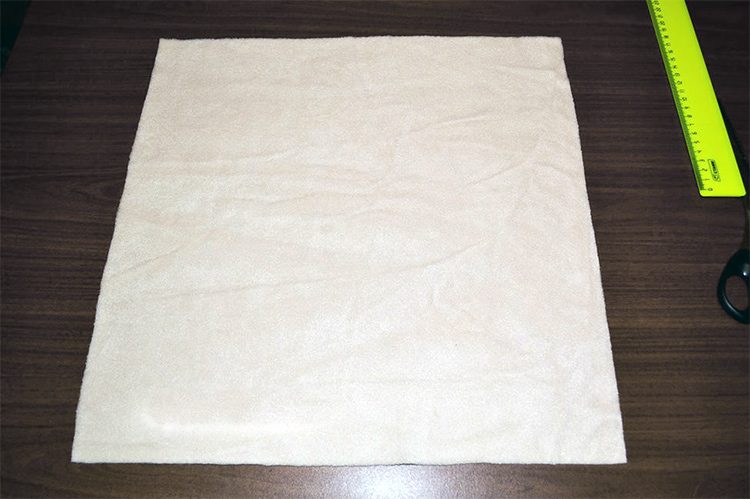 1. Прежде всего необходимо вырезать из ткани два квадрата 40 на 40 сантиметров для основания изделия.