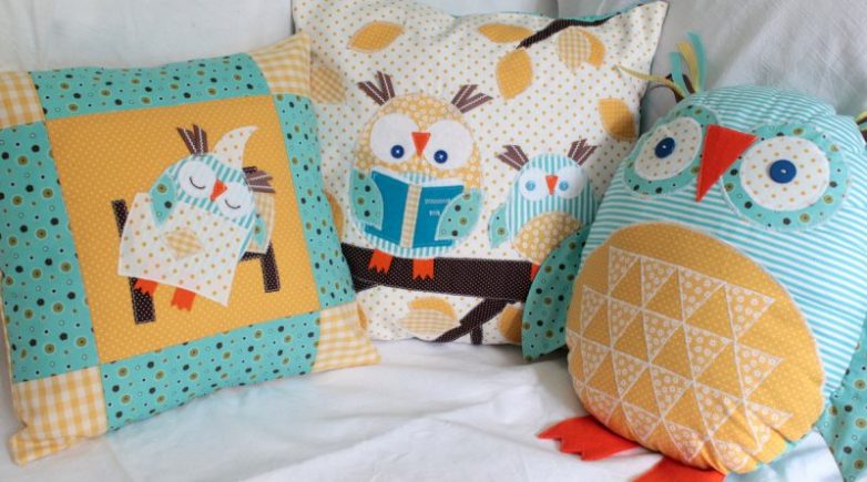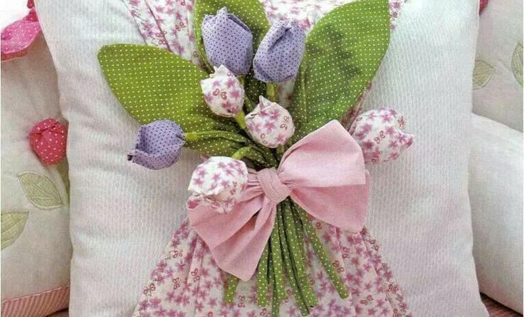 Пошив подушек из различных кусков ткани и украшение изделий аппликациями.