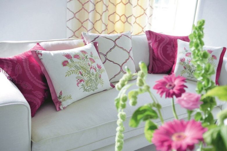 Есть еще один вариант, основанный на сходных эстетических принципах. Он не требует специальной расстановки предметов и лаконичного интерьера. Чтобы достигнуть такого результата, необходимо сшить декоративную подушку из того же материала, что использовался для изготовления обивки мебели. Оттенки должны совпадать между собой, однако узоры могут быть различны.