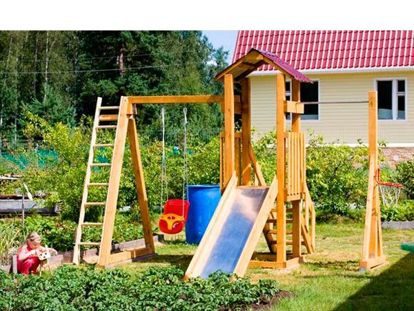 Когда дочки были немного помладше, муж решил обустроить им на даче детскую площадку. Ведь просто бегать по клумбам совсем не интересно. Куда интереснее кататься на качелях или играть в песочнице.