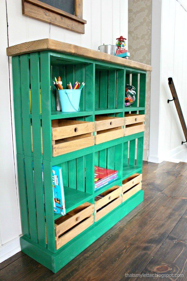 Часть ящиков поставьте на донышко, остальные – на боковую сторону.