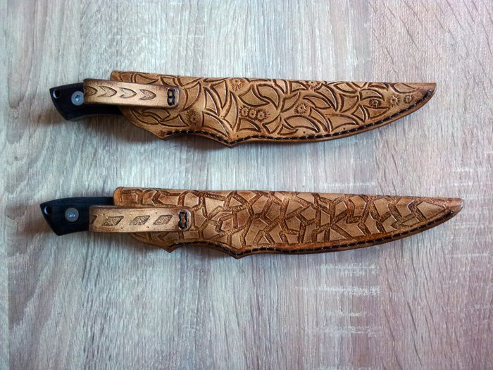 Кожаные ножны с первыми попытками в тиснение: