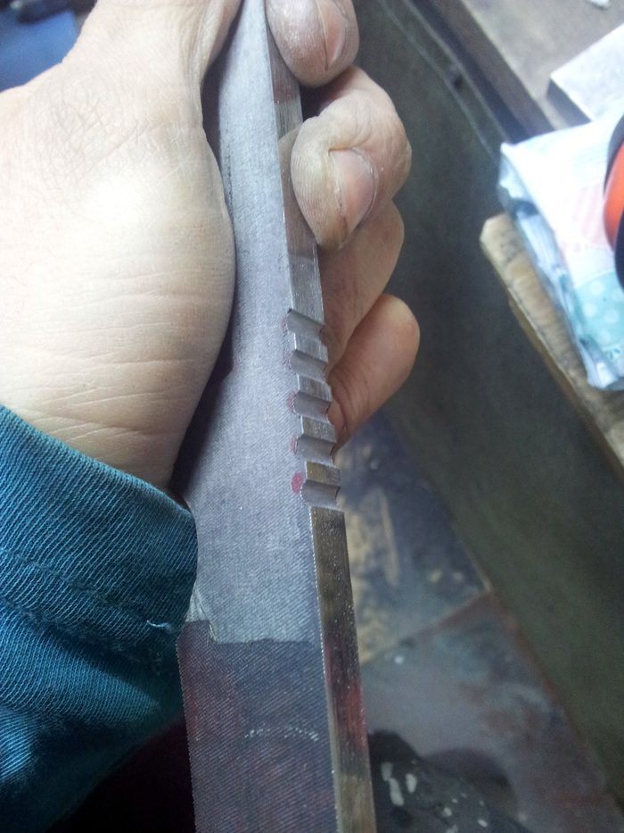 Напильники были изрядно убиты и местами насечка слегка повреждена, шлифовкой этот недостаток почти нивелировался, но местами все-таки видны темные пятнышки на месте повреждений. Это видно под некоторыми углами.