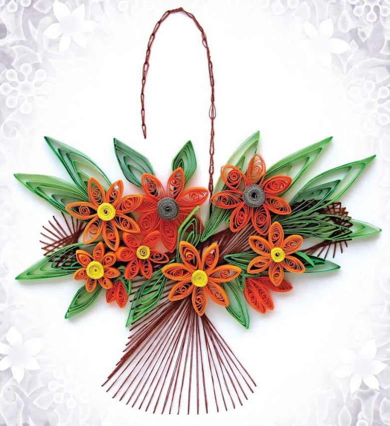 Корзина с цветами в технике квиллинг своими руками