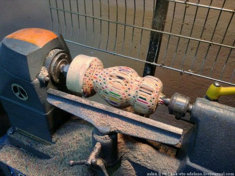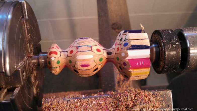 Честно говоря, нашел только подборки картинок без описания технологии производства, но думаю и так все понятно. Нужны карандаши, суперклей и токарный станок.
