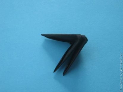 Надеваем первый модуль на два конца предыдущего ряда, а затем, следующий модуль: один кармашек вставляем в предыдущий модуль, а один в модуль первого ряда. И так идем до конца.