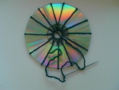 12. Продолжаем обматывать диск. Свободные кончики покрываем сверху ходовой нитью чтобы не торчали.