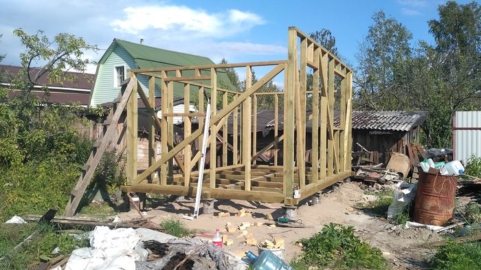 Потихоньку собираются стены и каркас крыши.