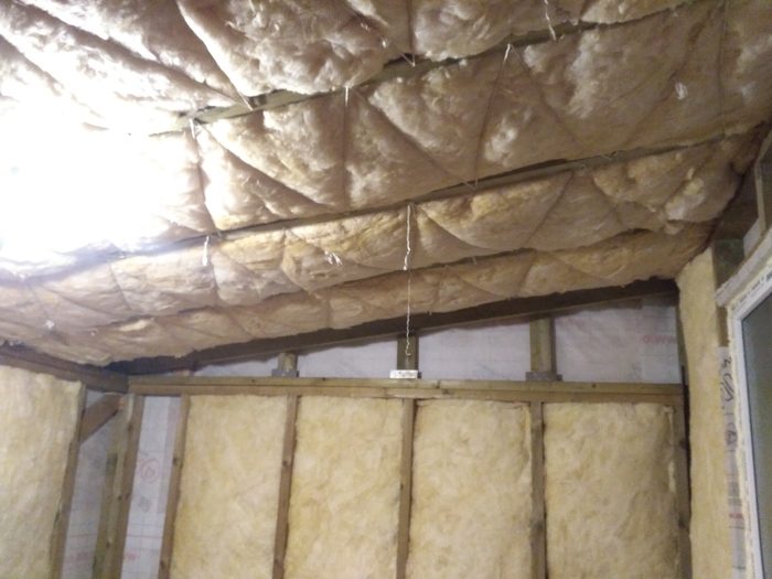 Мастерская становится все уютнее и уютнее. Утепляем и зашиваем стены и потолок. На утепление использовали вату 100 мм. Зашивали плитами ОСБ-12.
